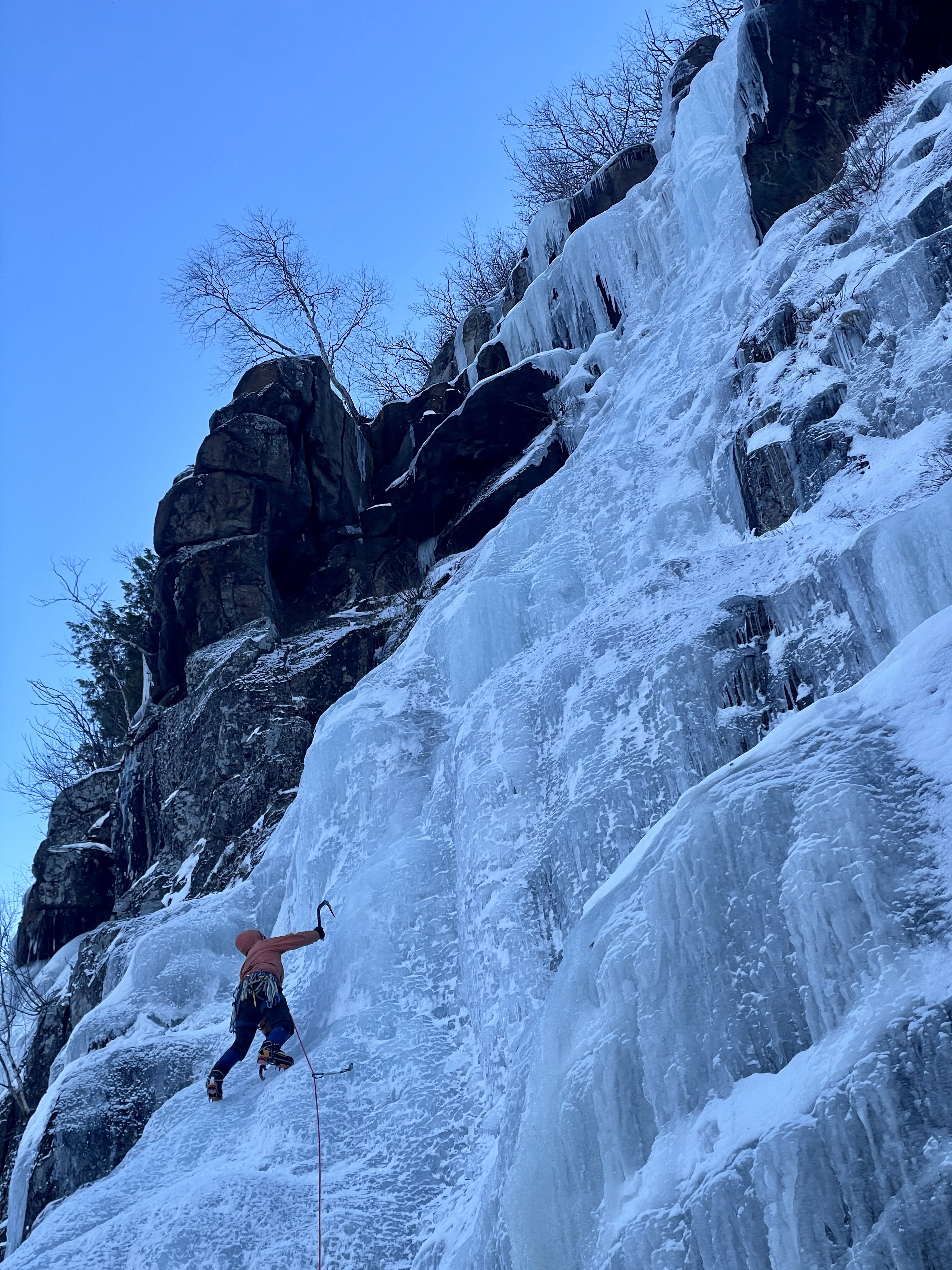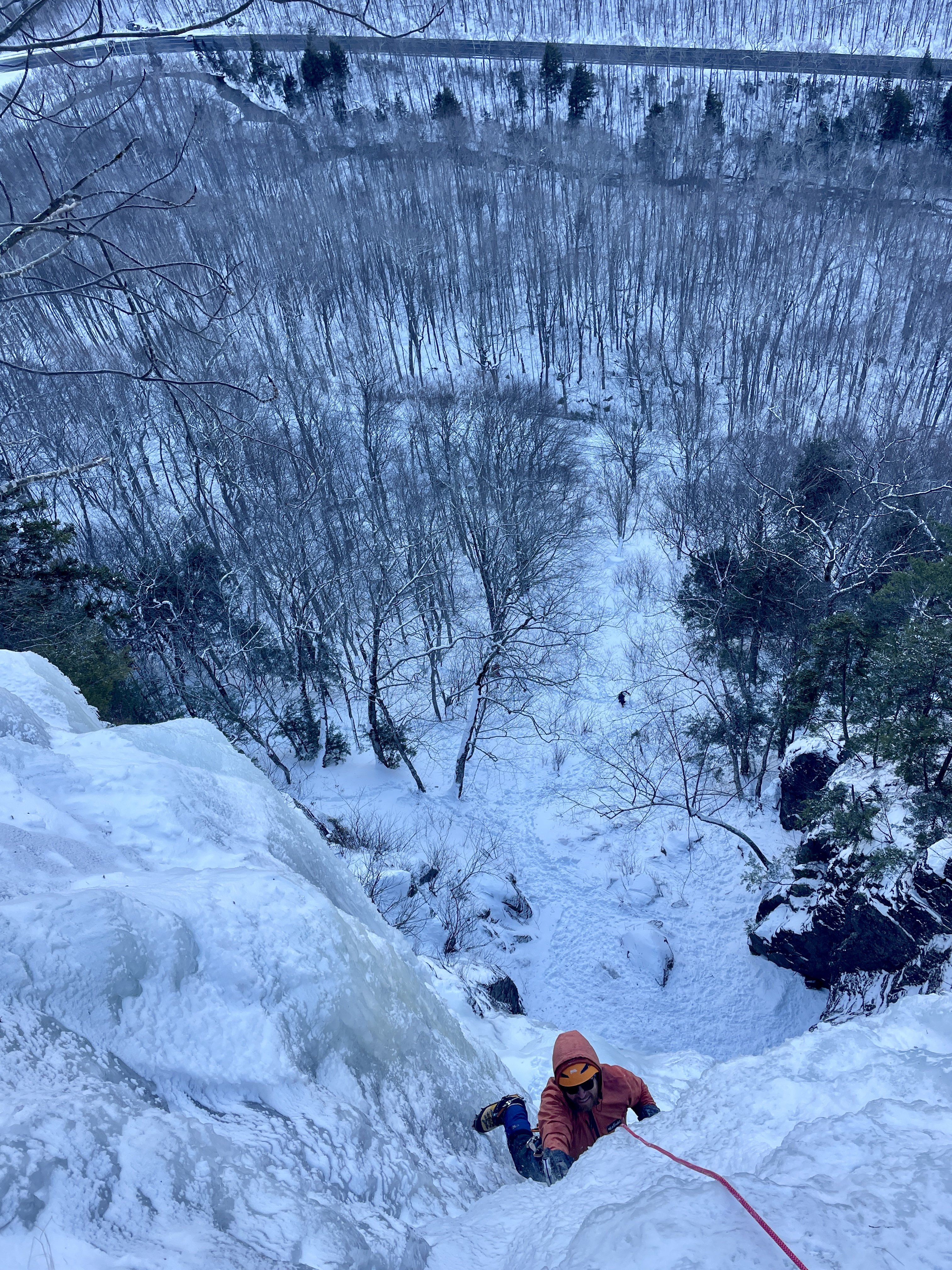 Trip: New Hampshah - Black Dike and Frankenstein Classics Trip Date: 12/30/2025 Trip Report: Was in New England visiting family for the holidays and got to sneak away for two days of ice up in New Hampshire. Lots of beta out there on these routes, but I will just reiterate what you probably know... the ice is plentiful, plastic and easily accessible. Worth a flight out from the NW? Maybe not given the other options much closer, but if the opportunity arises I recommend. I found this website to be very helpful for partners and conditions... https://www.neiceconditions.org/ ...They also do some great things (like the instagram hack) that seems like it might be useful here too. Day 0 scoping after freezing rain Like every road cut... Day 1 Black Dike High of 8F, 50mph gusts Pitch 3, harder than it looks Looking over at Fafnir... next time! Day 2 Frankenstein Clif Pegasus Rock Finish, Hobbit Couloir, Dracula + some thinner TR laps... 10-20 min walk from the car park. Pegasus Rock Finish is a second pitch alternative that goes up the pillar... Partner topping out on the Rock Finish... Partner's shot of the top/crux of Hobbit Couloir... HC and PRF from the ground... Approach vibes... Dracula... Gear Notes: Standard ice kit Approach Notes: Micro spikes were helpful