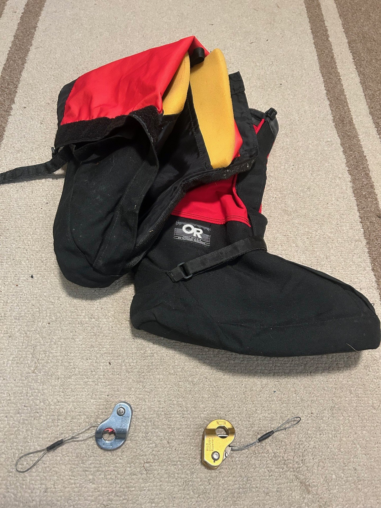Grivel G12s Hybrid Crampon - $40 Petzl Leopards - $40 Very Light Weight REI Ice Axe (about 70cm I think) - $30 Wild Country Overboot - $20 Size XL Mountain Tools Overboot - $20 Size L All items plus shipping.