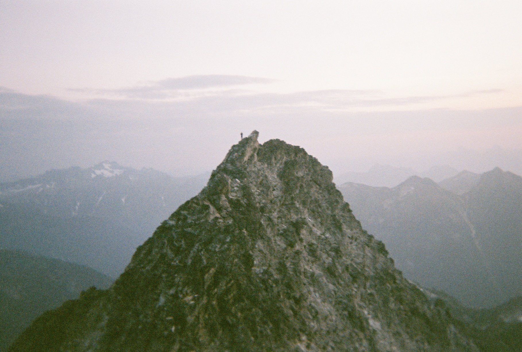 SJake on the summit of Luna, taken from the false summit with a disposable camera in 2018. One of those perfect mornings in the alpine.