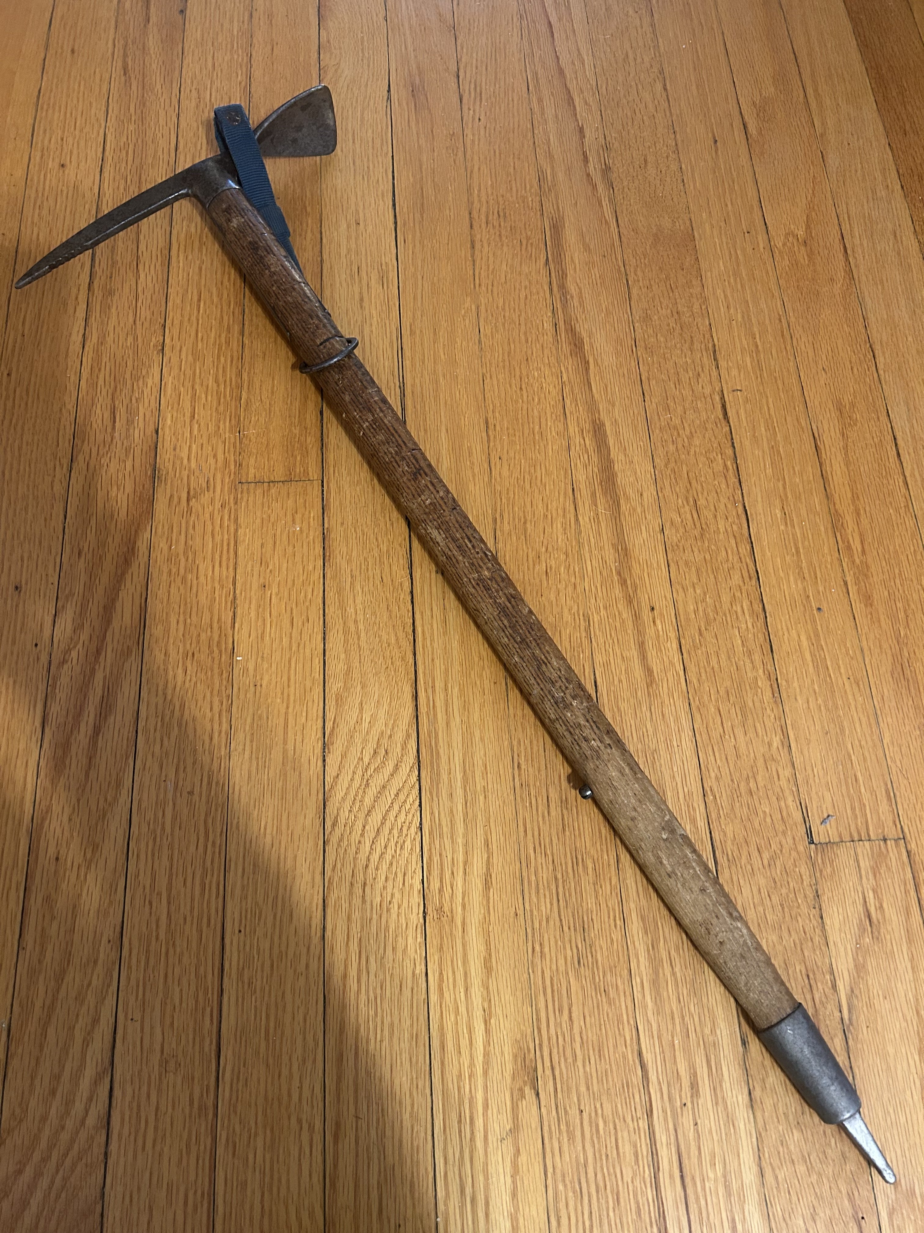 I suppose a good place to start the story of the Truckers is with how we got into climbing in the first place. Rich and I were friends in junior high school in the mid-60s, and we began hiking on the North Fork of the Skokomish and other hikes in that area around that time, usually with one or more of his eight brothers coming along. The first indication that we were heading toward climbing, was when we hiked to First Divide. Coming up out of the forests into more open country – the beauty of the meadows, and the ability to see a wider expanse, enticed us to hike to higher places. At that time, there was no climber’s guide to the Olympics, but Rich had an uncle who had gone up Mt. Washington, and gave us a general idea of the route. We successfully ascended it and felt the satisfaction of getting to a summit. But there was also that feeling of anticipation as you’re approaching the ridge leading to the summit, and then the exhilaration of seeing the mountains, valleys, and ridges beyond it that hooked me. Since there was no climbing guide, we relied on topographic maps and a compass to plan and execute a climb. Sometimes that worked out – sometimes not. There are a lot of details missing on topographic maps. We would start ascending what looked on a map to be a relatively steady incline to find an impassable cliff, or a slope covered with devil’s club. You can see how the concept of a “truck route” would evolve as we took roundabout routes to find our way to summits like Mt. Pershing, or North Brother. Originally, we saw rock-climbing as kind of crazy, but as some of the summits became more technical, we realized the necessity of learning that skill. We turned to “Mountaineering – The Freedom of the Hills” (1st Edition) for guidance. We went to the hardware store and got a rope and practiced rappelling on Green Mountain, which was close to home for us, and practiced belaying techniques to protect the one rappelling. A couple years later, we replaced it with a Goldline climbing rope from the REI warehouse store on 11th Ave in Seattle. That store was a trip It was an old warehouse with a strange smell and a lot of stuff at cheap prices. The only other place to get similar gear was Eddie Bauer, which was very upscale. We paid one or two dollars to become members, and bought nearly all our gear there. · Used Climbing boots - (heavy leather boots with Vibram soles that I used whether hiking, climbing, or rock climbing - $30) · Steel crampons that would fit my boots (about $15) · A wooden ice axe – Himalaya Pickel, model Kuno Rainer, made in Austria ($13) · And lots of other equipment, like nylon webbing, pitons, hammers, gaiters – all much heavier and bulkier than the equipment you see today. I had a Cruiser pack that was too large for most of our trips, but I got a smaller Jan Sport pack in the early 70s at a discount because I worked at the K2 ski factory on Vashon Island at that time. I haven’t done any serious climbing for quite a while and, except for the ice axe, it’s all been given away. I can’t part with the ice axe – it’s been used and misused, on well over a hundred climbs, and has saved my life on many occasions. We got climbing pants at a military surplus store for $3. One hundred percent wool, with padded butt and knees, baggy above the knee, and cuffs just above the ankle. I’m not sure which servicemembers wore them, but they were indestructible, warm, and comfortable. You can get a general idea of them from one of the photos attached to a previous post. My Himalaya Pickel - Yesterday