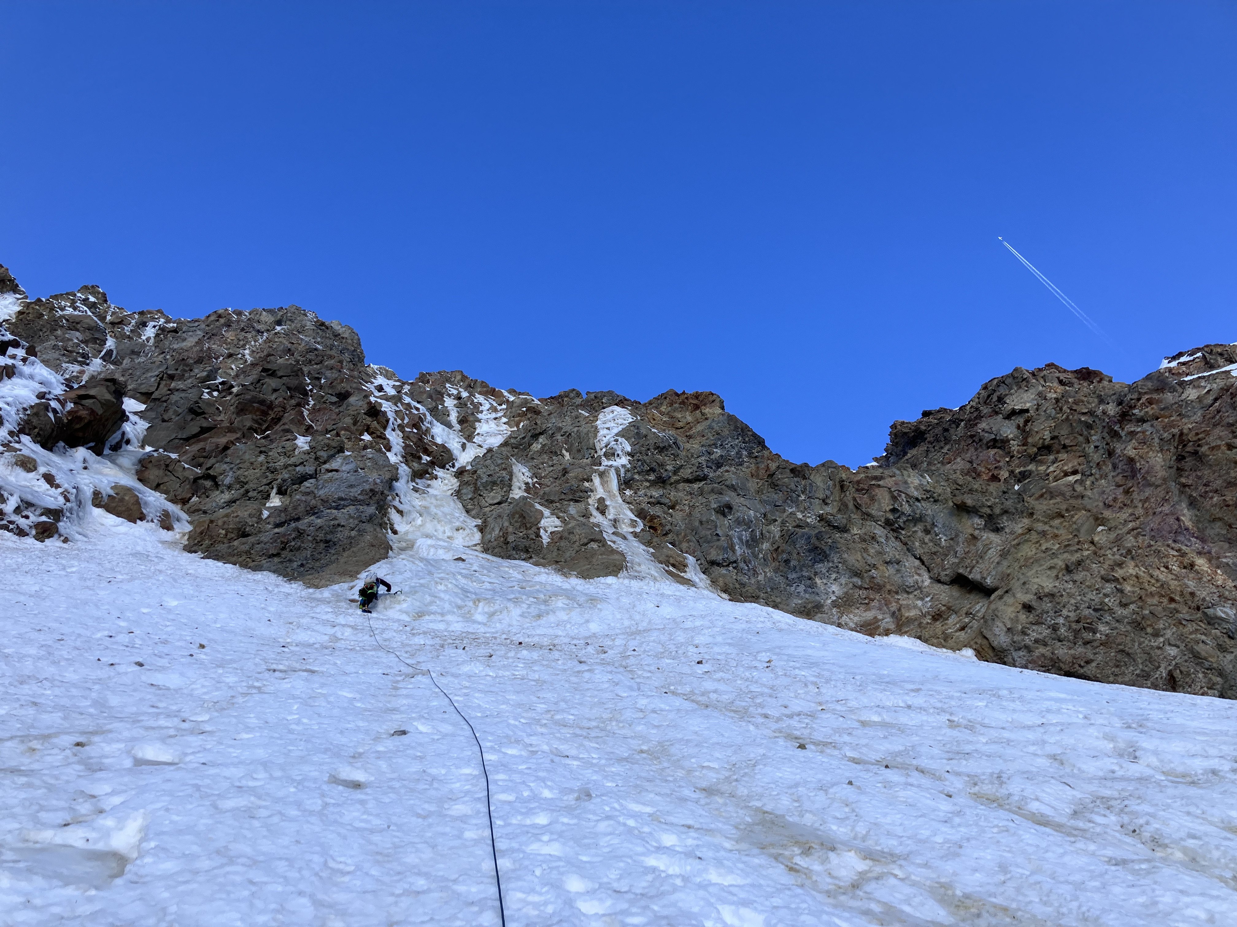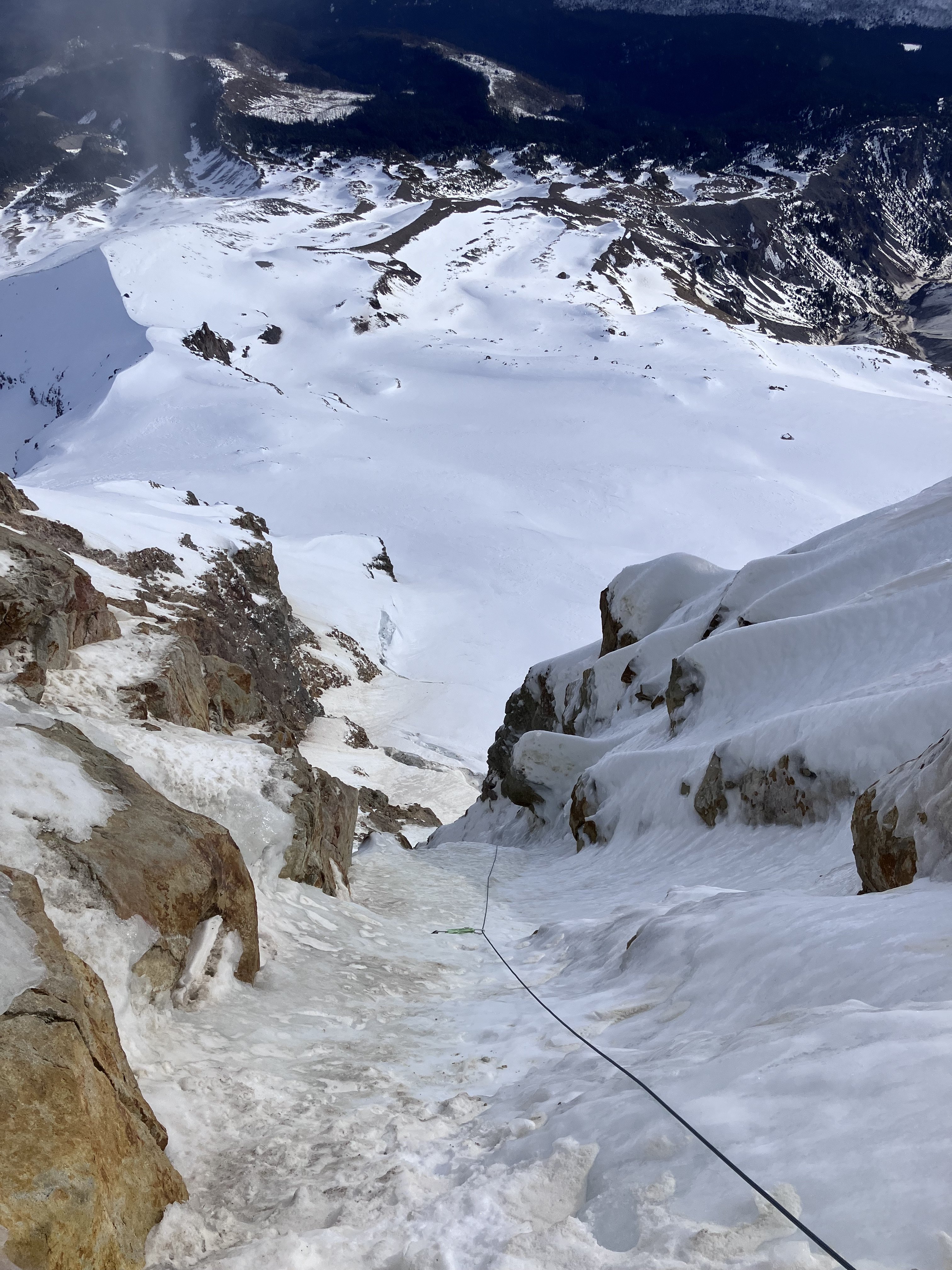 Thanks very much for the photo! I just went up by TJ this morning to take a look for myself. Based on my photos, the Eliot HW looked pretty damn good!... but now looking at yours, I'm not so sure. What I thought was blue water ice is maybe just plastered ice/rime...? The upper ice step on the right n face gully looked good too. But both gullies seem very protected by the bergschrund. Hard to say if easily passable.