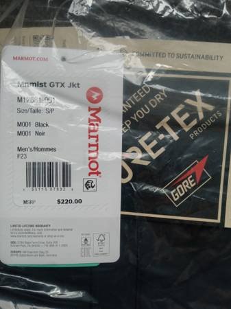 BRAND NEW, never used 2024 Marmot Minimalist GORE-TEX® Paclite® jacket. Still in mfgr package with tags. This was the last model year the jacket material is Paclite, newer versions are inferior Pertex. Black, men's small, $170 cash, Seattle area only. Whether backpacking through a forest draped in green, canoeing on a misty lake, or chasing down a taxi in the rain, the Men's Minimalist Jacket is your reliable go-to. It gives you GORE-TEX® Paclite® fabric for windblocking and rain protection plus a Durable Water Repellent (DWR) finish and 100% seam taping. When the temps drop, pull up the attached hood for extra coverage. • GORE-TEX® fabric is lightweight and packable, yet durably waterproof, windproof, and breathable; 100% seam taped to keep water out • PFC-free water-repellent coating keeps you dry and minimizes environmental pollution •Attached hood with peripheral cord adjustment for extra coverage • Zippered chest and hand pockets • Adjustable drawcord hem and VELCRO® adjustable cuffs blocks drafts